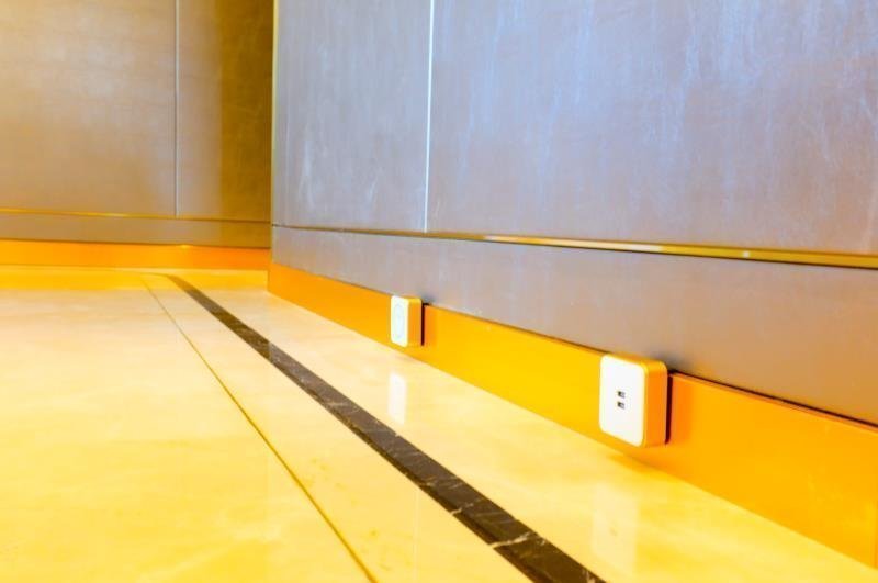 甚至還可以沿著踢腳線做成全屋軌道插座,可以直接代替踢腳線,也能隨時充電。不僅顏值高,而且還非常實用呢。現在軌道式插座被越來越多人認可,你家裝修不妨試試吧!